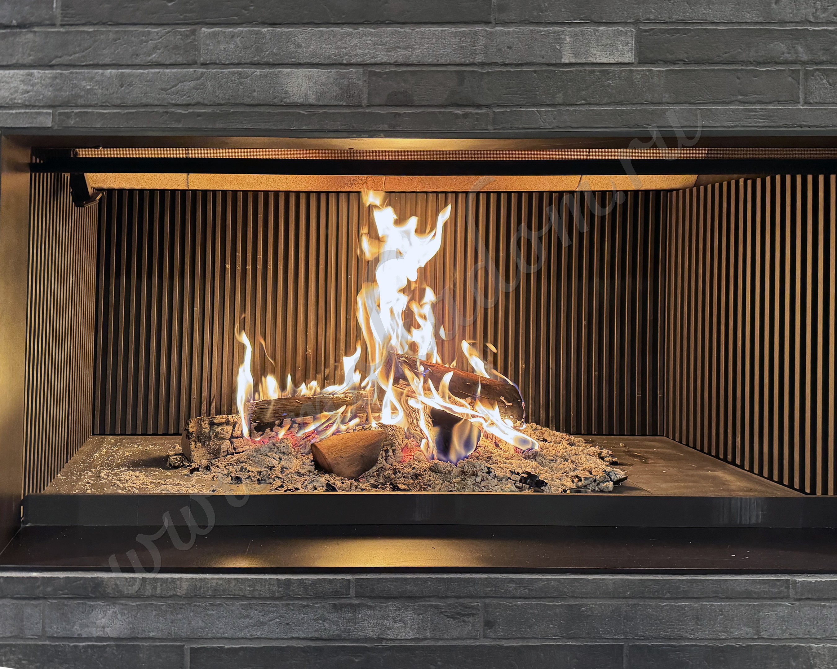 Этот красавец оснащен удобным подъемным искрозащитным экраном, чтобы наслаждаться пламенем в безопасности.