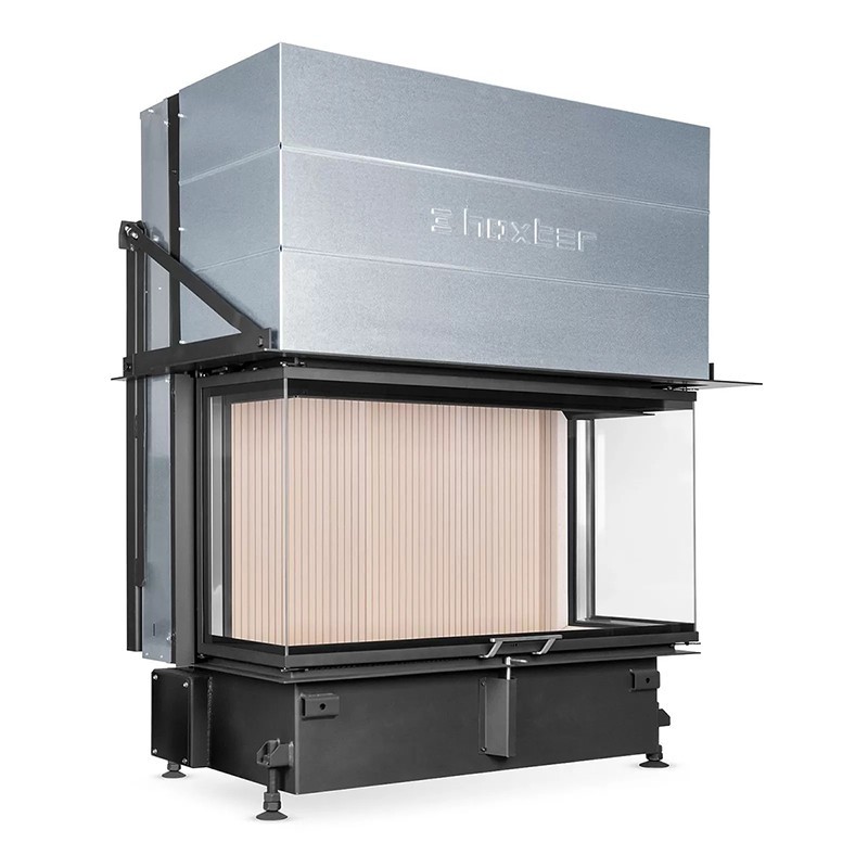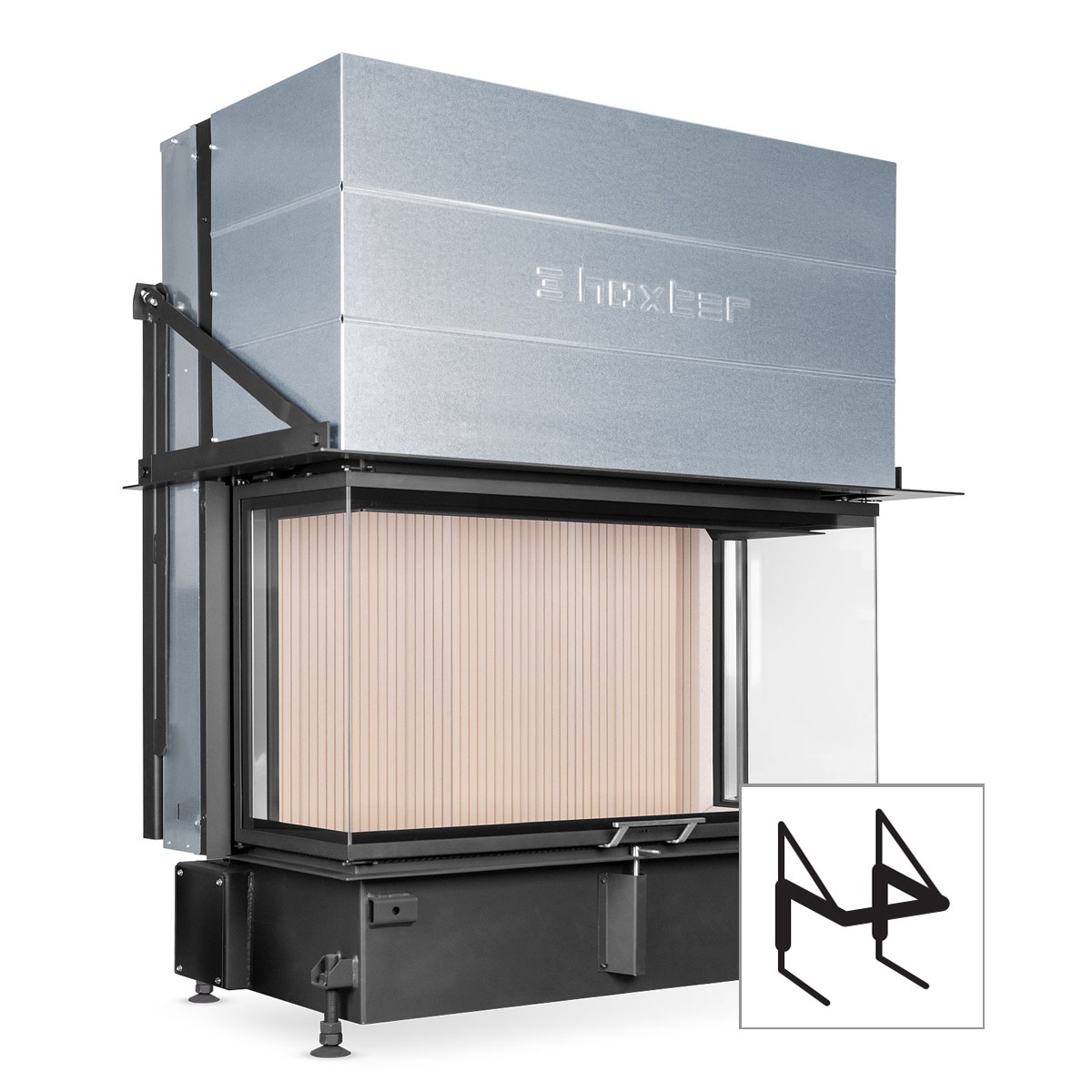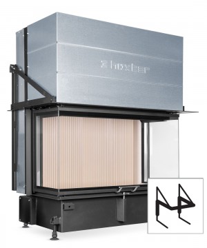Hoxter UKA 37/125/37/57h - это трёхсторонняя каминная топка. Шутеровка - светлый шамот. Дверца оснащена подъемным механизмом с тихим и плавным ходом. Для чистки стекла от сажи боковые стёкла открываются в сторону. Для удобства монтажа топка оснащена 8-мисторонней монтажной рамкой.